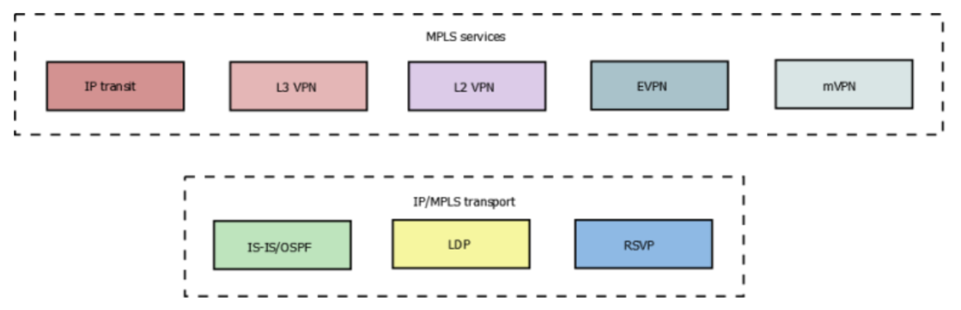 但是,MPLS在发展过程中变得复杂。传统MPLS网络通常运行IS-IS或OSPF进行IP路由,运行标签分发协议(Label Distribution Protocol, LDP)或资源预留协议(Resource Reservation Protocol, RSVP)进行标签分配,以及边界网关协议(Border Gateway Protocol, BGP)及其多种地址族用于MPLS服务。