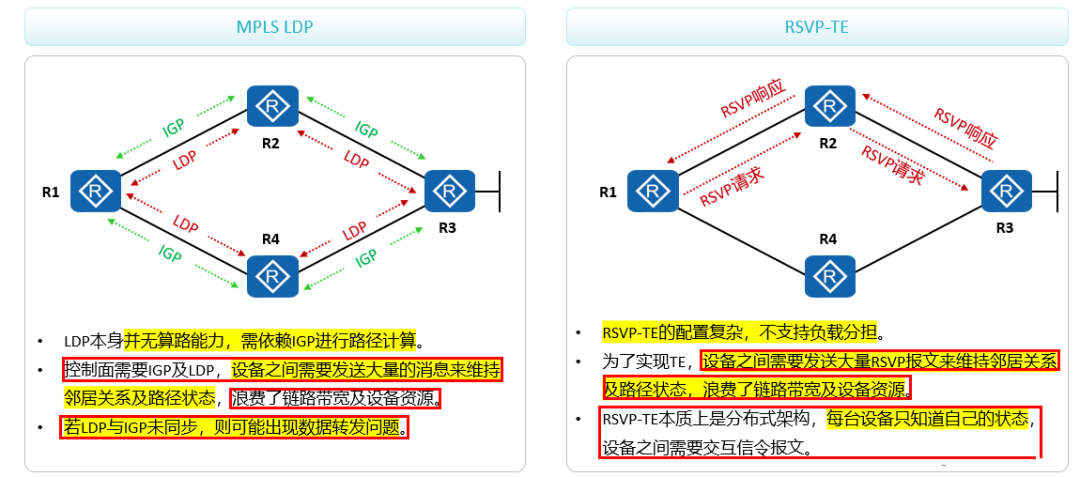 在协议限制方面,RSVP并不支持等价多路径(ECMP)功能,而LDP虽然提供了对ECMP的支持,却可能面临某些限制。至于LDP与IGP的同步机制,其设计初衷是为了避免在网络收敛过程中产生流量黑洞,但这一机制有时反而会引发问题,导致IGP会话陷入僵局,这无疑是一种弄巧成拙的局面。