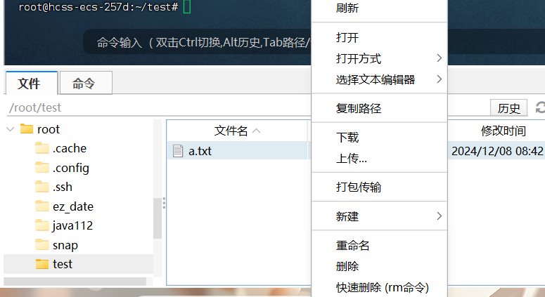 除了上面通过命令的方式进行上传之外,还可以直接将 Windows 中的文件拖到 finalshell 的文件区中