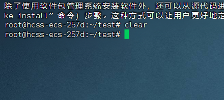 在查看了文件内容之后,命令行被很多其他东西占满了,就可以使用 clear 命令来清理一下屏幕,之前输入的内容还是在上面,通过滚轮或者上键可以查看之前的内容