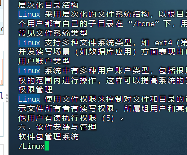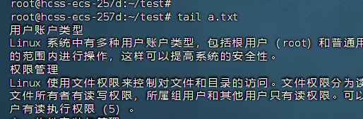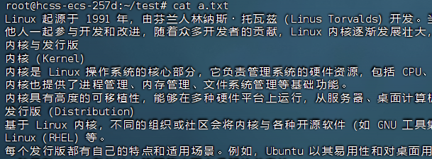 输入 cat + 要查看的文件名,就会显示文件内容在命令行中
