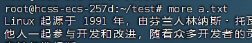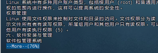 通过 more 命令来读取文件就会显示文件的一部分: more + 要查看的文件名