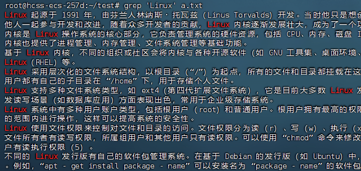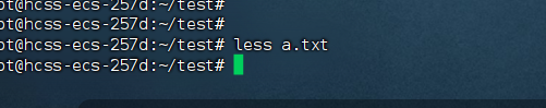 使用 less 的话文件的内容是不会留在命令行中的,就像打开了一个记事本进行查看一样,还支持搜索功能,也可以输入 / 查找的内容,按下回车就会把所有搜索到的都标记出来