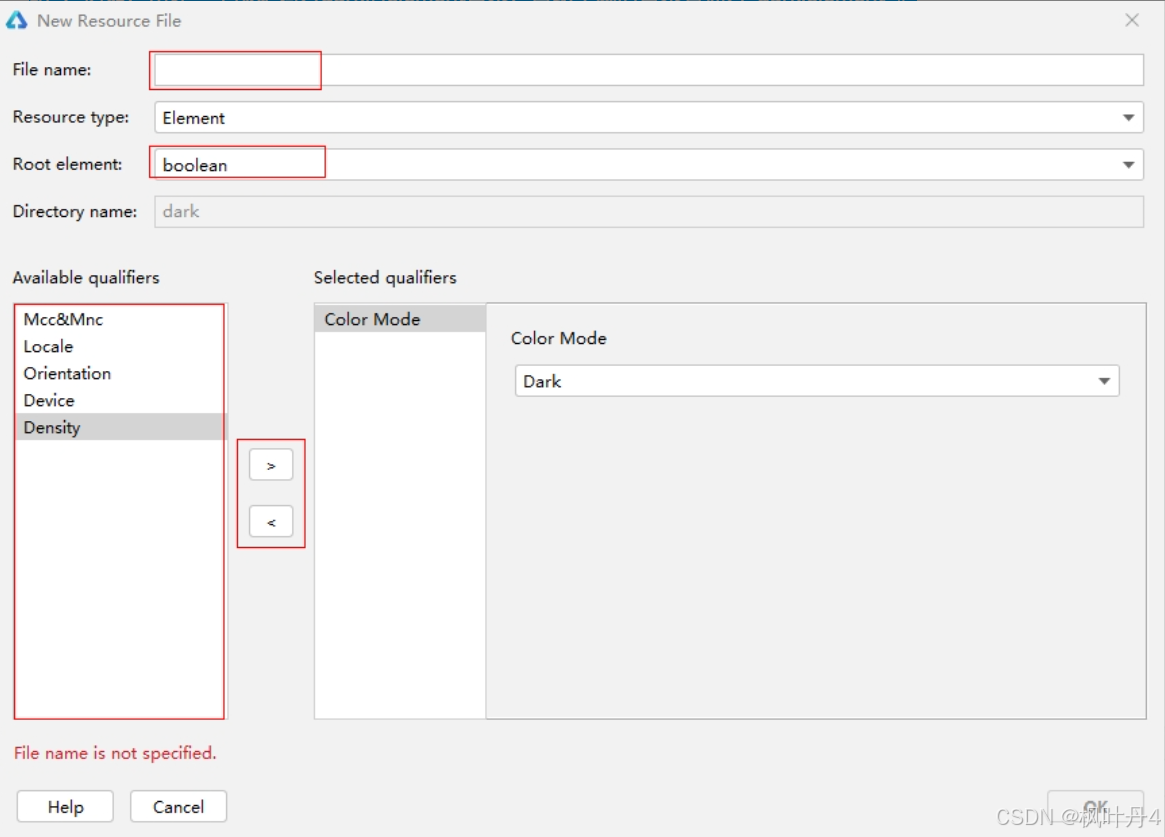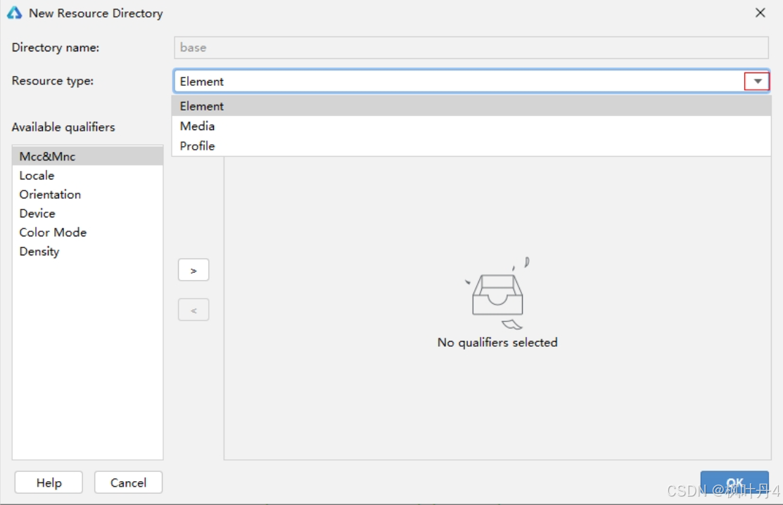 资源目录创建的是base目录,也可根据需求创建其它限定词目录。确定限定词后,选择资源组类型,当前资源组类型支持Element、Media、Profile三种,创建后自动生成目录名称。