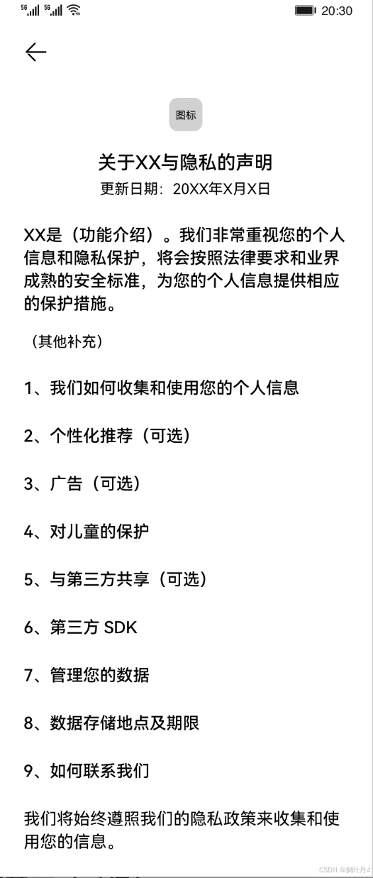 随着移动终端及其相关业务(如移动支付、终端云等)的普及,用户隐私保护的重要性愈发突出。应用开发者在产品设计阶段就需要考虑用户隐私的保护,提高应用的安全性。HarmonyOS应用开发需要遵从隐私保护规则,在应用上架应用市场时,应用市场会根据规则进行校验,如不满足条件则无法上架。