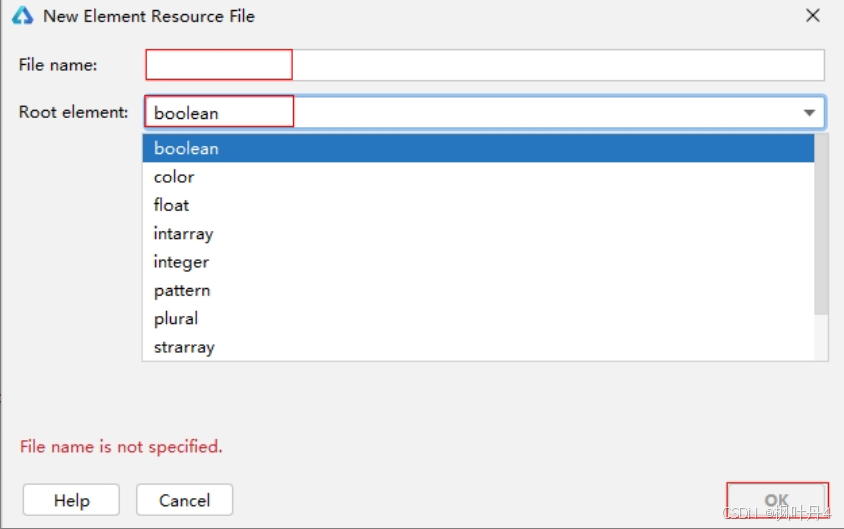 例如,在element目录下可新建Element Resource File。