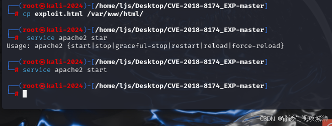└─# cp exploit.html /var/www/html/┌──(root㉿kali-2024)-[/home/ljs/Desktop/CVE-2018-8174_EXP-master]