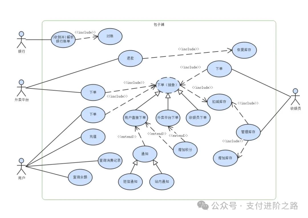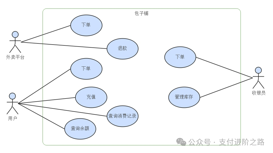 为了更好地进行说明,我举一个例子:小帅开了一家包子铺,主营业务就是卖包子,为了更好地管理用户、订单、账务,小帅准备搭建一套系统。 今天先介绍一下系统用例怎么设计。