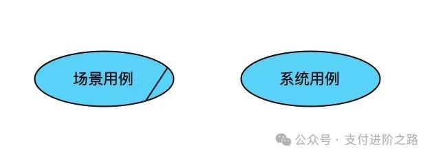 用例分为两种:场景用例和系统用例。这是两种用例图标的区别:
