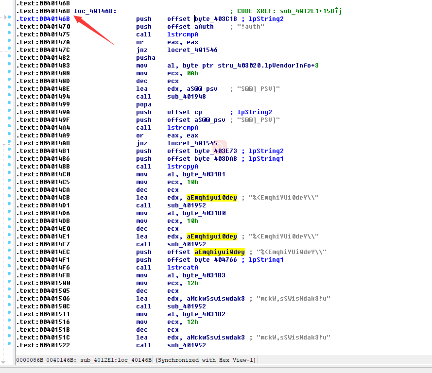 在调试中我们可以看到比较代码,一次比较两个字节