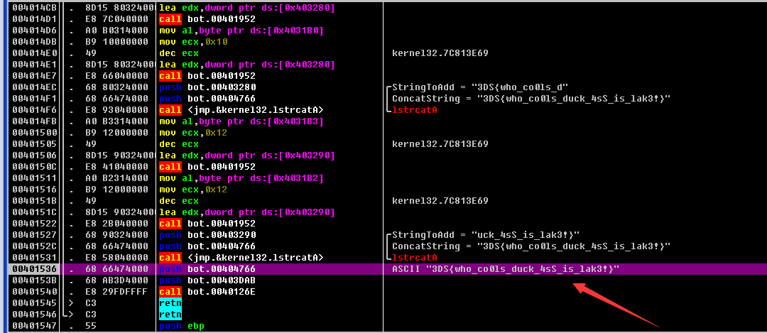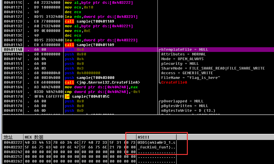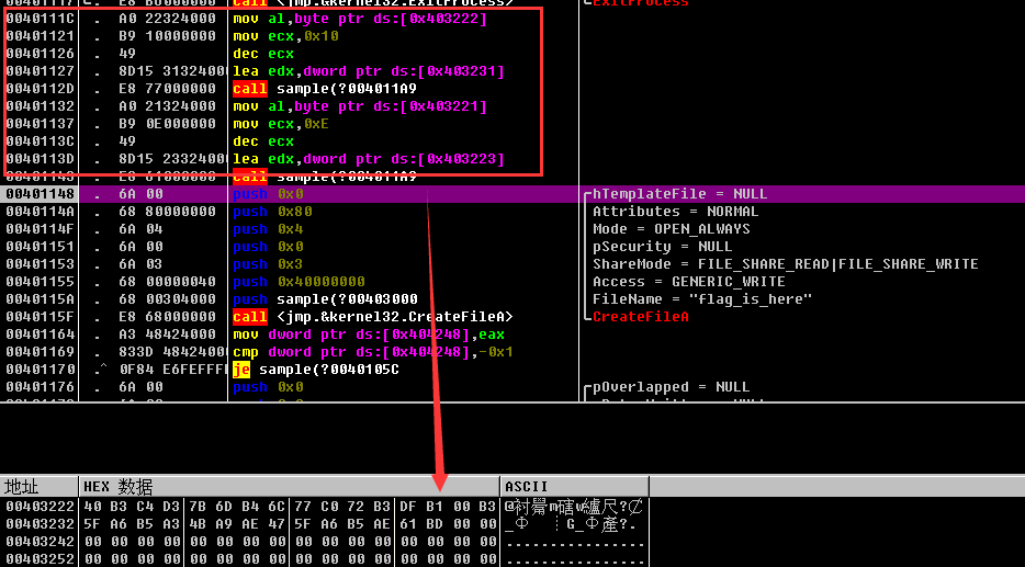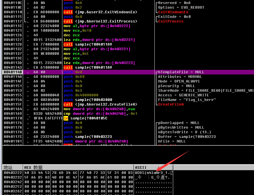 运行到nop,我再将eip设置为40111c再运行即可获得flag