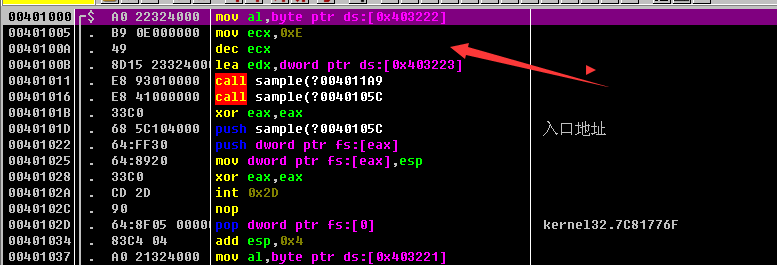 突然我发现入口点也是解密的,那我先运行这里再将eip设置到那里