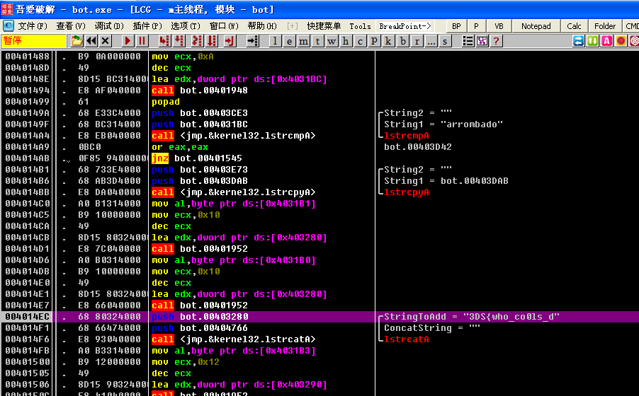 后来直接将eip设置成0040142B,调试的时候改下strcmp完的跳转标志位