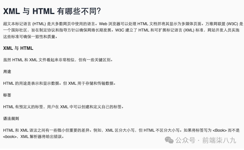 XML是一种用于存储、传输和重建任意数据的标记语言和文件格式。其定义了一套用于编码文档的规则,这些规则使得文档既易于人类阅读,也易于机器处理。