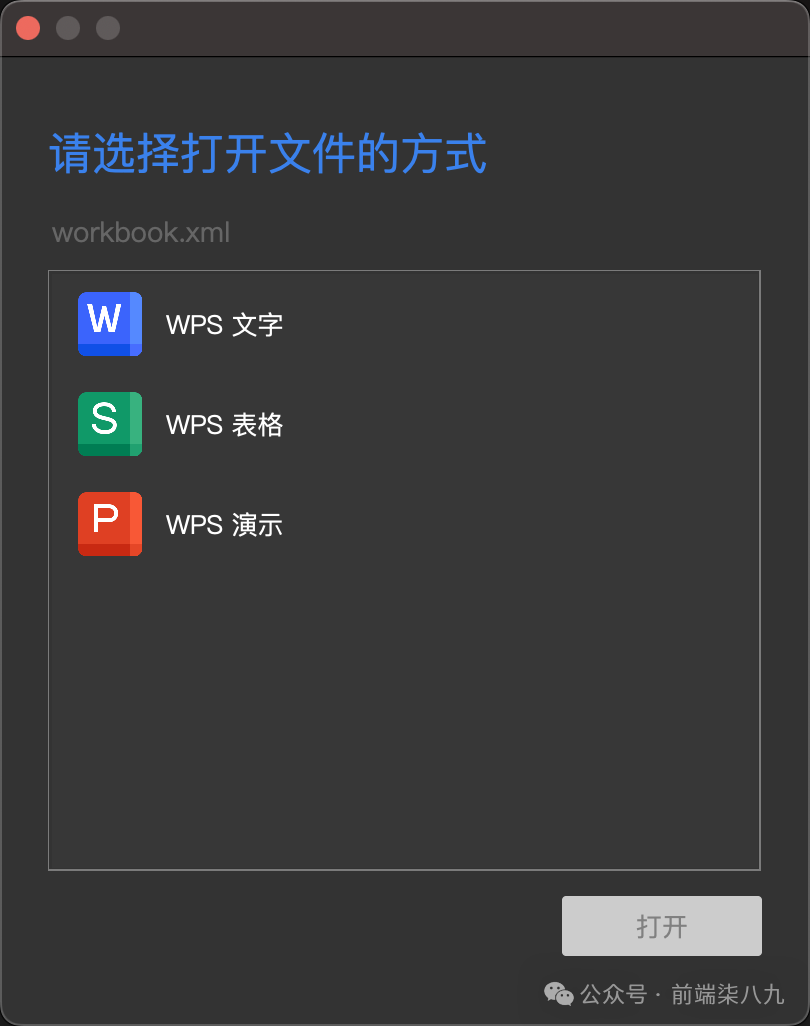 xml拖入到WPS时,它会跳出一个提示框,问你需要将该xml以何种模式展示。这步也反向证明了Office_Open_XML 是微软开发的一种基于 XML 的压缩文件格式,用于表示 spreadsheets(也就是 excel)、ppt 和 word这个概念。