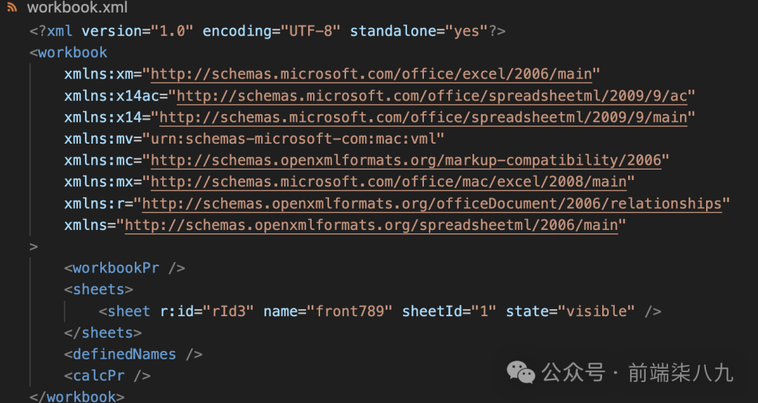 对应我们excel的文件就是xl/workbook.xml。