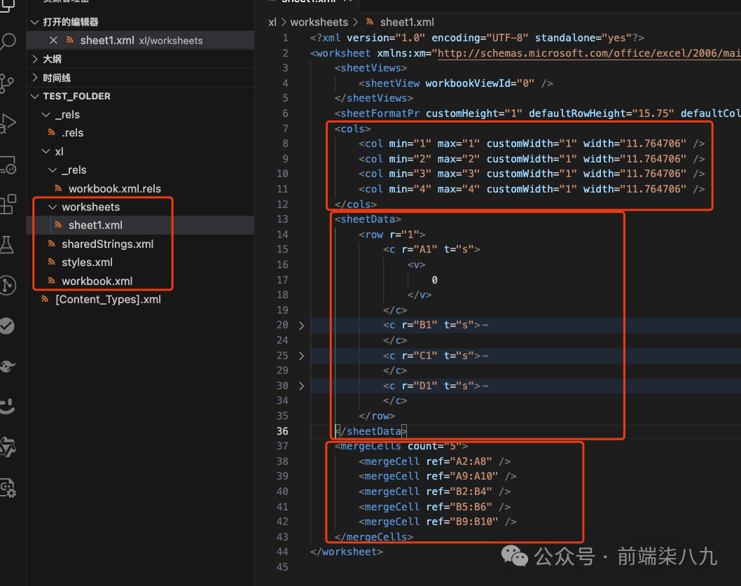 worksheets文件夹用于存放excel的sheet信息,由于我们之前的excel只有一个sheet。所以这里只有一个sheet1.xml。如果生成的excel有多个sheet。那么这里就有多个sheetN.xml文件clos定义每个列的宽度sheetData用于定义excel中每个cell的值merge维护每个sheet的合并信息sharedStrings.xml是一种优化方案,excel中存在多个相同的值,那么我们可以存放到这里,然后在sheetN.xml引用这些值,可以节省excel的存储空间。styles.xml用于存放excel的样式信息。虽然,我们的引擎暂未支持样式的处理,但是后期也是可以把这块给加上的。关于xml有很多文章来介绍它。我们在摘录关于维基百科\_xml[1]的定义。