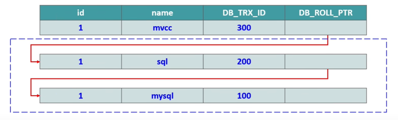 DB_ROLL_PTR:回滚指针,指向记录的上一个版本。