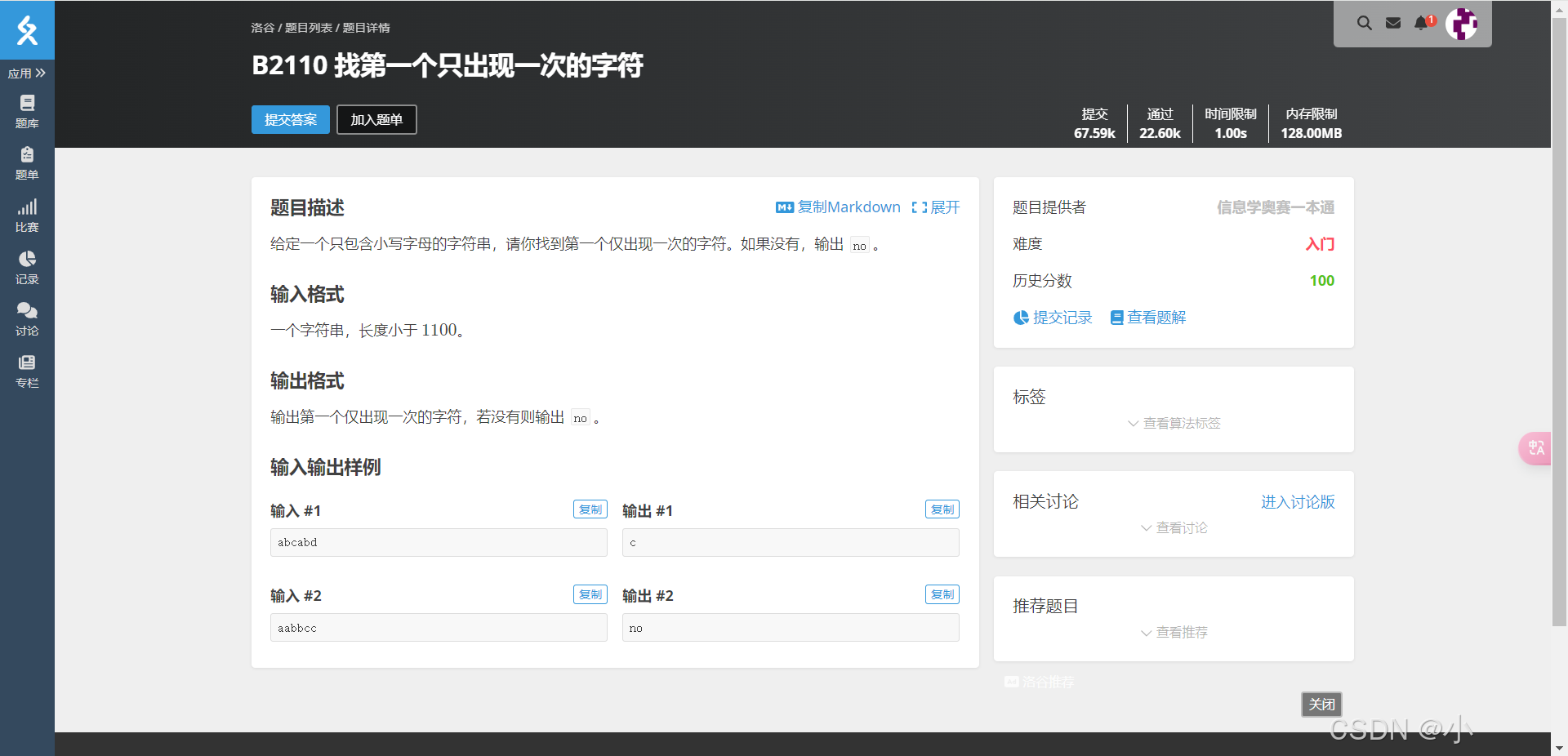 社区首页 >专栏 >【C++】B2110 找第一个只出现一次的字符