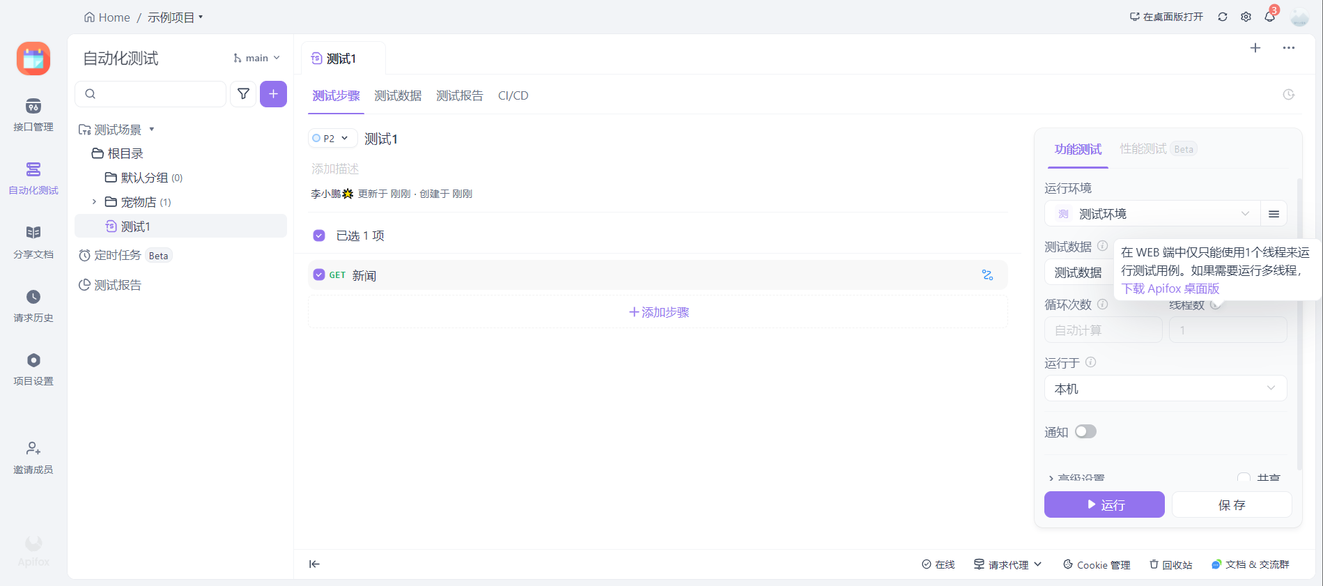 当然,在这里我们还可以自定义线程数及循环次数来执行。需要下载Apifox的客户端,我这里使用PC浏览器,就不模拟了。大家可以看一下。