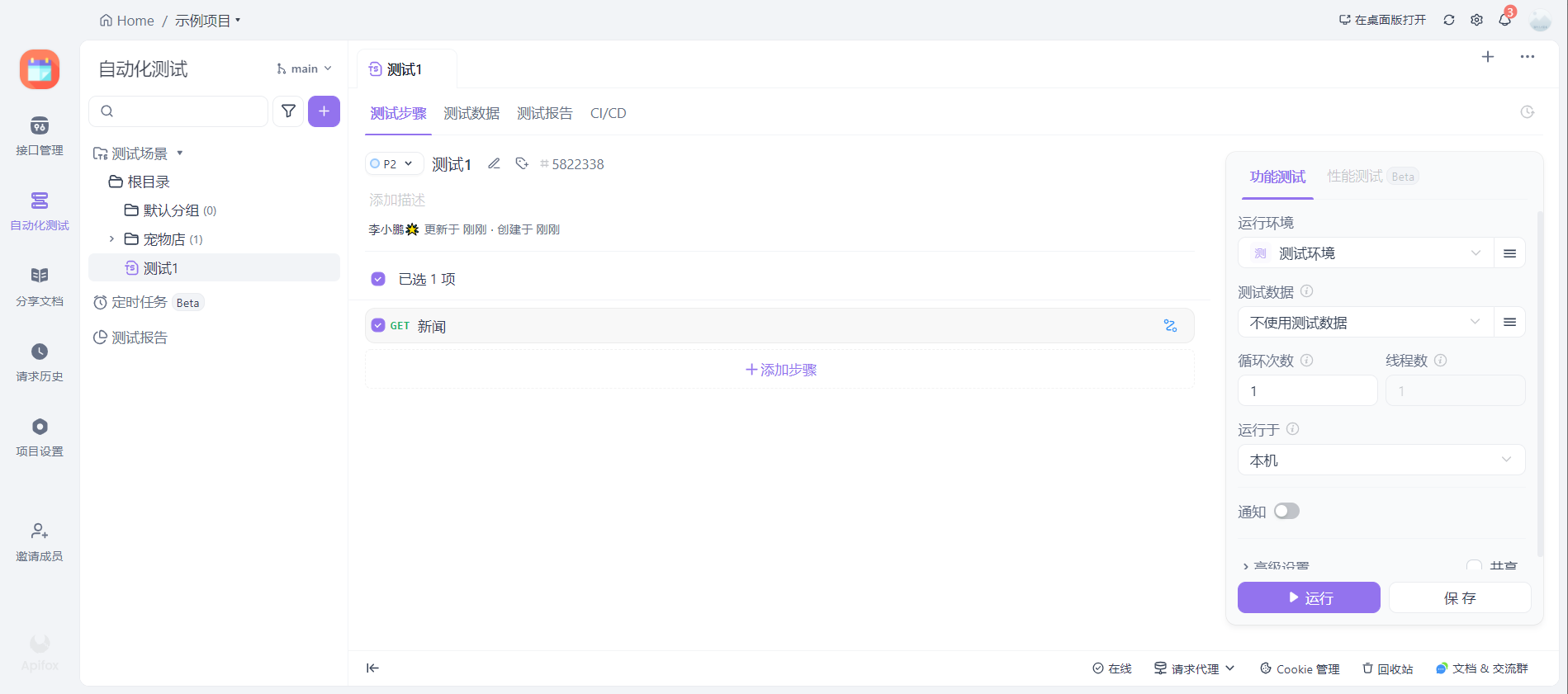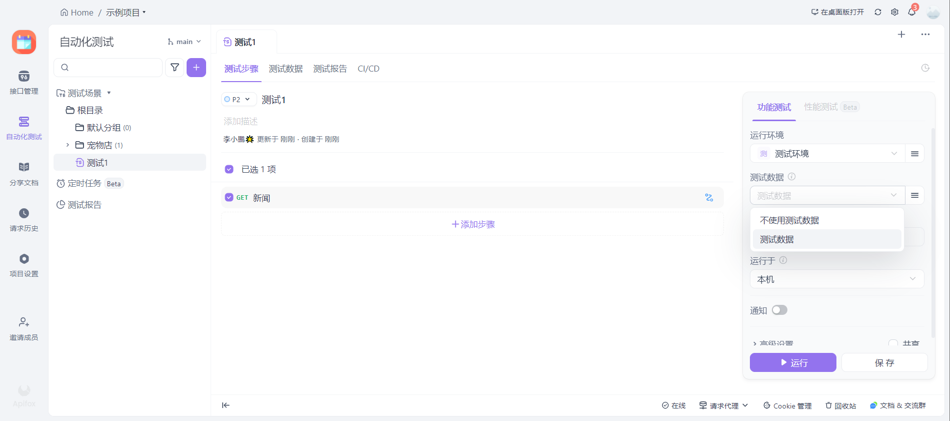 以上都是一些简单的的使用,但也是我们实际业务中用的较多的场景了。接下来我们看左侧导航的第二栏,自动化测试