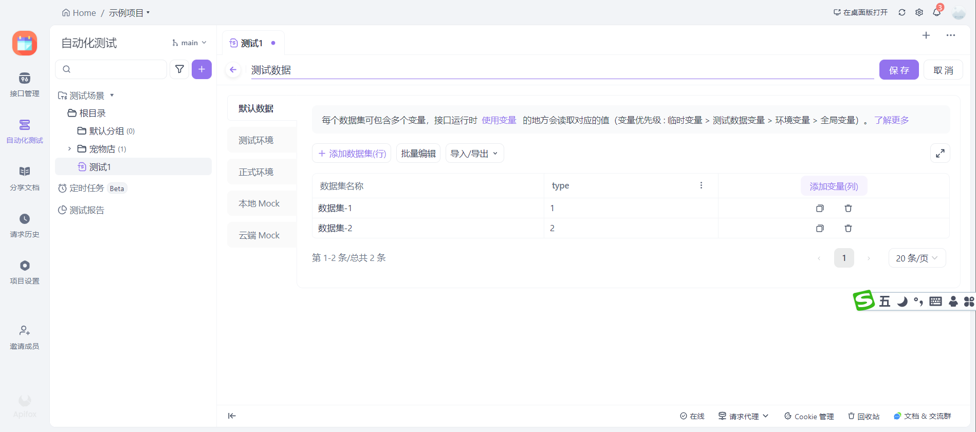 我们再看一下测试数据的栏目,首次进来需要新增测试数据。这里可以直接导入我们需要的测试数据哈。