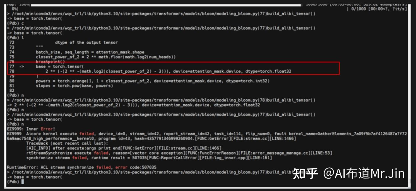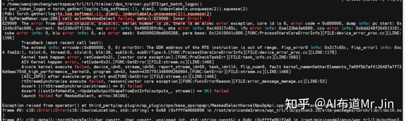 第三步:不停地打torch.npu.synchronize(),直到找打这一行:它前面的torch.npu.synchronize()没有报错,它后面的torch.npu.synchronize()报错了。