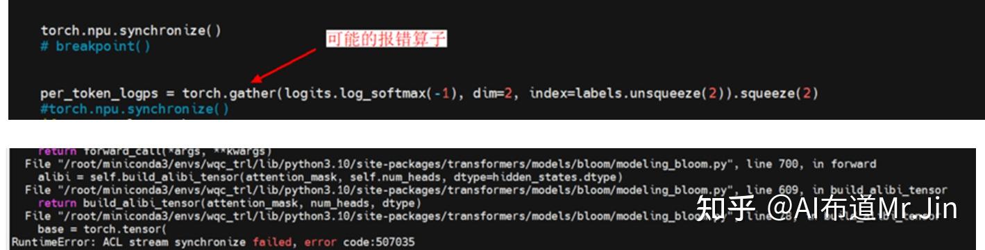 如果是第二种,则说明真实报错点在新增的torch.npu.synchronize()之后