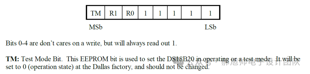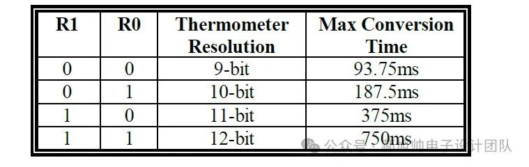 测量温度是需要转换时间的(将外界的问题转换为数字量),9bit的精度需要最大93.75ms;10bit的精度需要最大187.5ms;11bit的精度需要最大375ms;12bit的精度需要最大750ms。