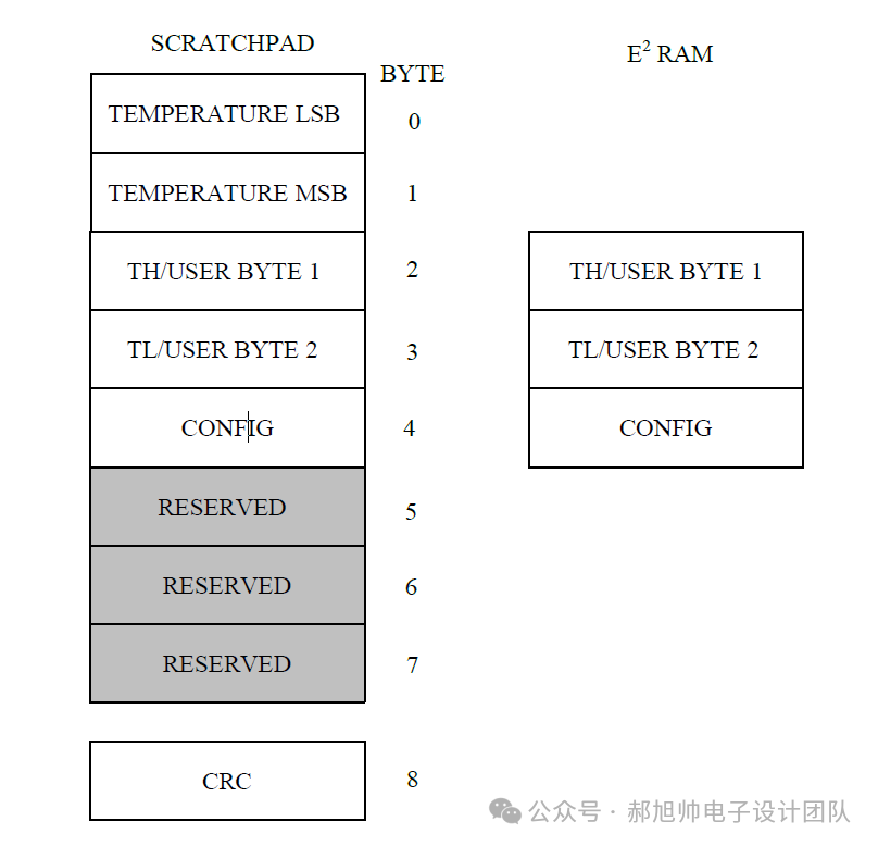 读出暂存器的命令为BEH,后面跟着读出N个字节的数据,如果只是想读取温度,那么只需要读出两个字节的数据就可以了。