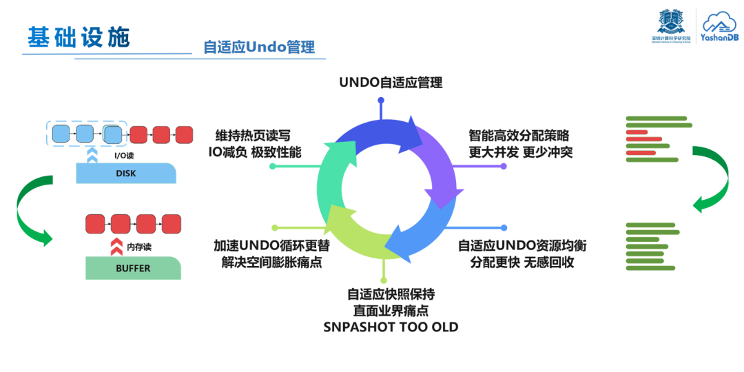 自适应Undo管理基于运行时的统计信息,引入Undo Segment动态扩展、Segment Block动态rebalance、Undo Block智能分配、Undo Retention动态调整等机制,有效解决了之前Undo管理中存在的痛点问题,能应对不同负载的事务处理要求。