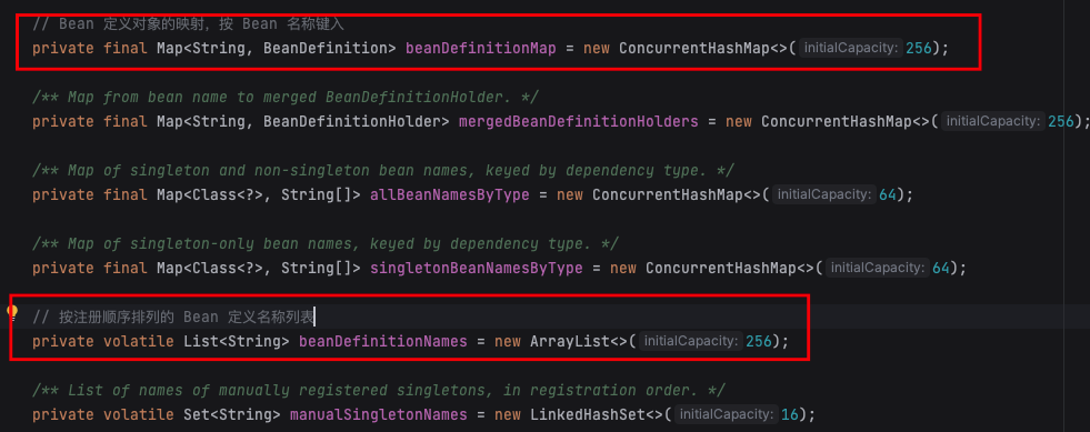 // 3.bean定义持有集合(持有bean定义、名字、别名)
