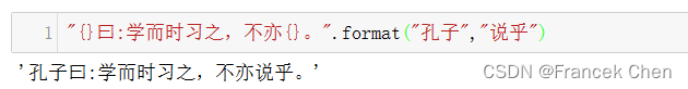 "{1}曰:{{学而时习之,不亦{0}}}。".format("说乎","孔子")