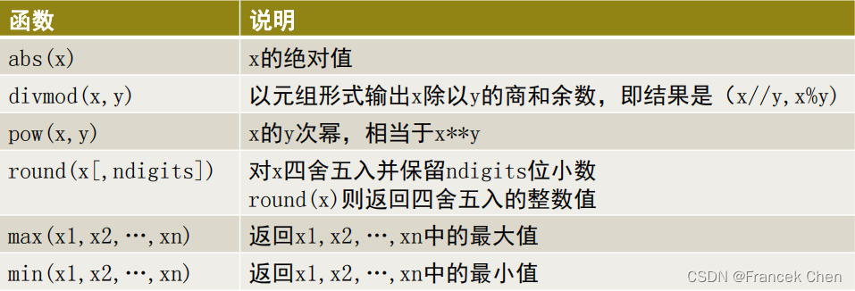 输出:print()函数也是标准库的内建函数。 参数说明: (1)可以没有任何参数,也可以有多个参数,相互间用英文逗号分隔。 (2)参数可以分为两大类,一类是内容参数,一类是控制参数。