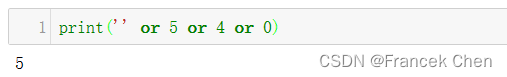 分析:等价于 ‘ ’ or 5 or 4 or 0 ,第一个是空串,能最快给出结果的表达式是5,所以结果就是5。