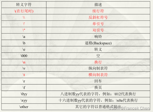 顾名思义,就是改变了原有字符的含义,使其表示新的含义。 例如:\n作为转义字符,不再表示原来的\和n两个字符,而是表示换行符