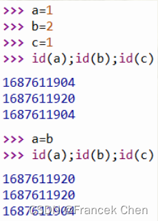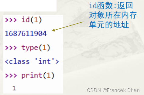 (1)相互关联:变量通过赋值操作才能引用特定的对象 (2)对变量使用id/type函数,实质是对关联的对象使用这些函数。 (3)变量一定先赋值,再使用,直接访问未引用对象的变量出错。