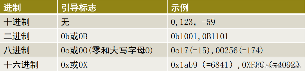 (4)<类型>表示输出整数和浮点数类型的格式规则。 对于整数类型,输出格式包括6种: b:输出整数的二进制方式; c:输出整数对应的Unicode字符; d:输出整数的十进制方式; o:输出整数的八进制方式; x:输出整数的小写十六进制方式; X:输出整数的大写十六进制方式;
