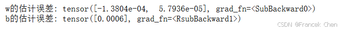 print(f'w的估计误差: {true_w - w.reshape(true_w.shape)}')