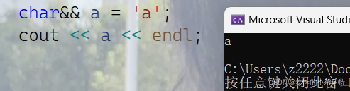 Type& r1 = x; Type&& rr1 = y; 第⼀个语句就是左值引⽤,左值引⽤就是给左值取别 名,第⼆个就是右值引⽤,同样的道理,右值引⽤就是给右值取别名。