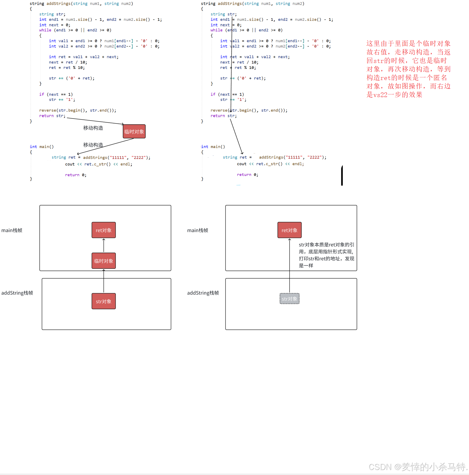 但是如果是对函数里面创建的临时对象做返回值,那么无论是最后左值引用返回还是右值引用返回,局部销毁的时候,空间也销毁了,因此这样也是无法解决的。
