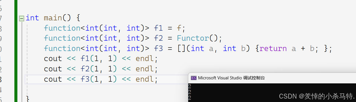 它给自己类型模版传递调用对象的类型而shared_ptr无需,故我们要说这里建议用仿函数;下面请看例子:
