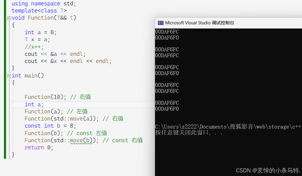 这里我们总结一下:右值一般就是临时对象,匿名对象,常量,像这些不能取地址的等都是右值,其他都是左值,我们经常也以是否能取地址来判断。