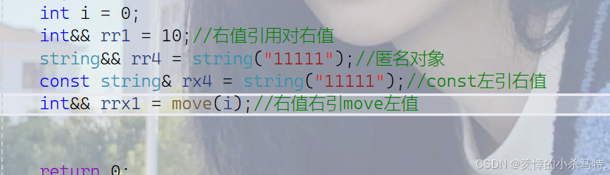 ②右值引⽤不能直接引⽤左值,但是右值引⽤可以引⽤move(左值)(这里相当于给它转化成右值了,此时是一个将亡值)。