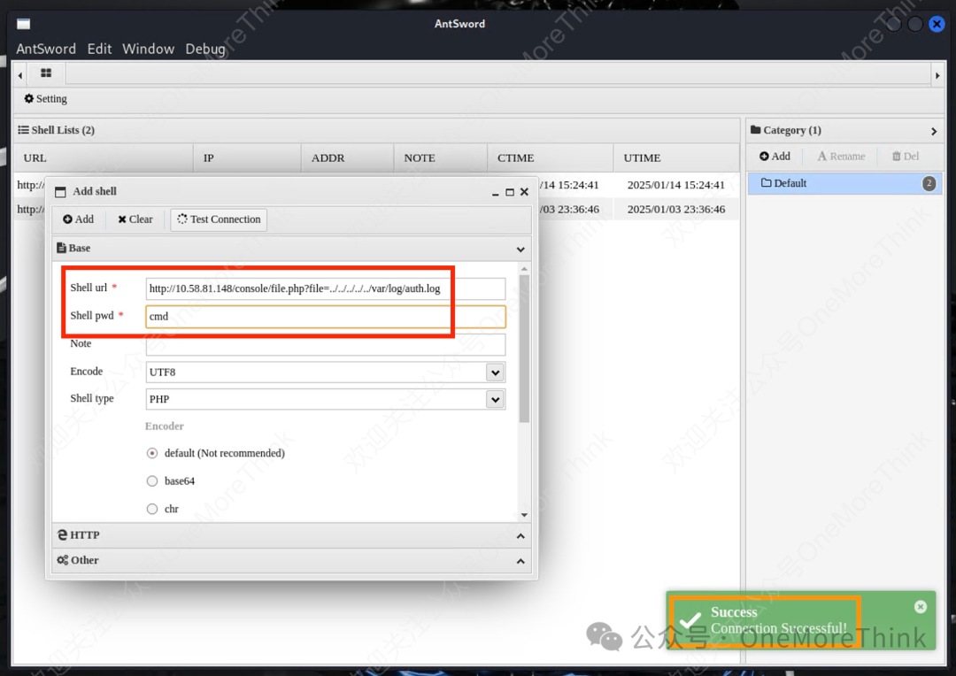 向22/SSH服务的访问日志投毒,成功写入webshell。