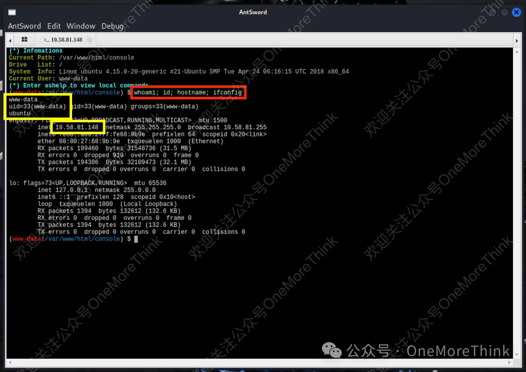 连接webshell,获得www-data用户权限。