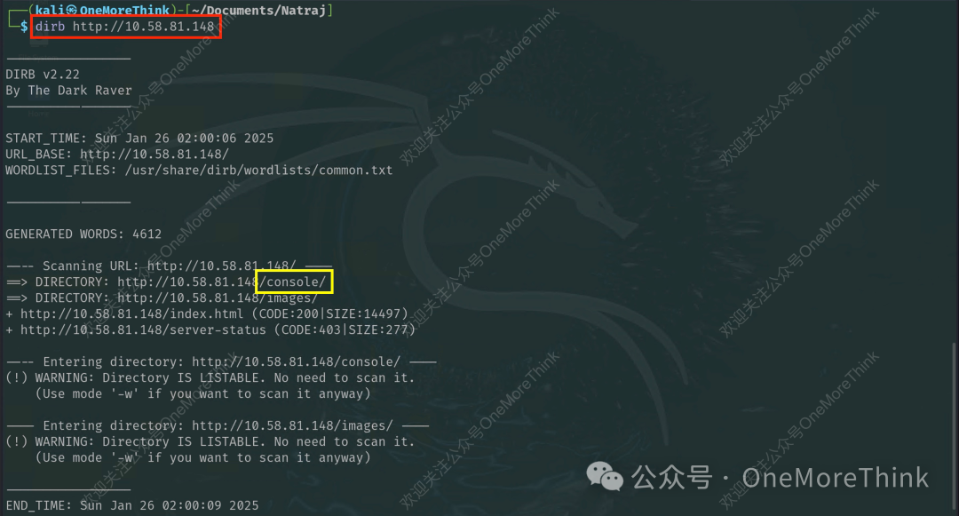 扫描80/HTTP服务的目录和页面,发现/console/目录。